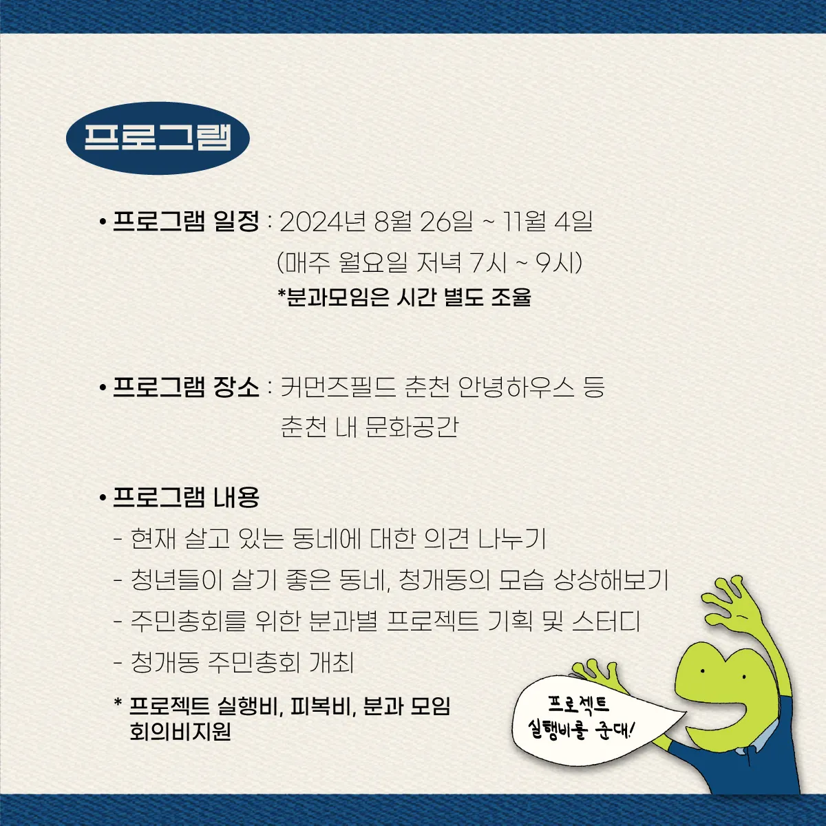 춘천 청년들이 살기 좋은 동네 직접 만들어보자! 동네 세계관 커뮤니티 모임