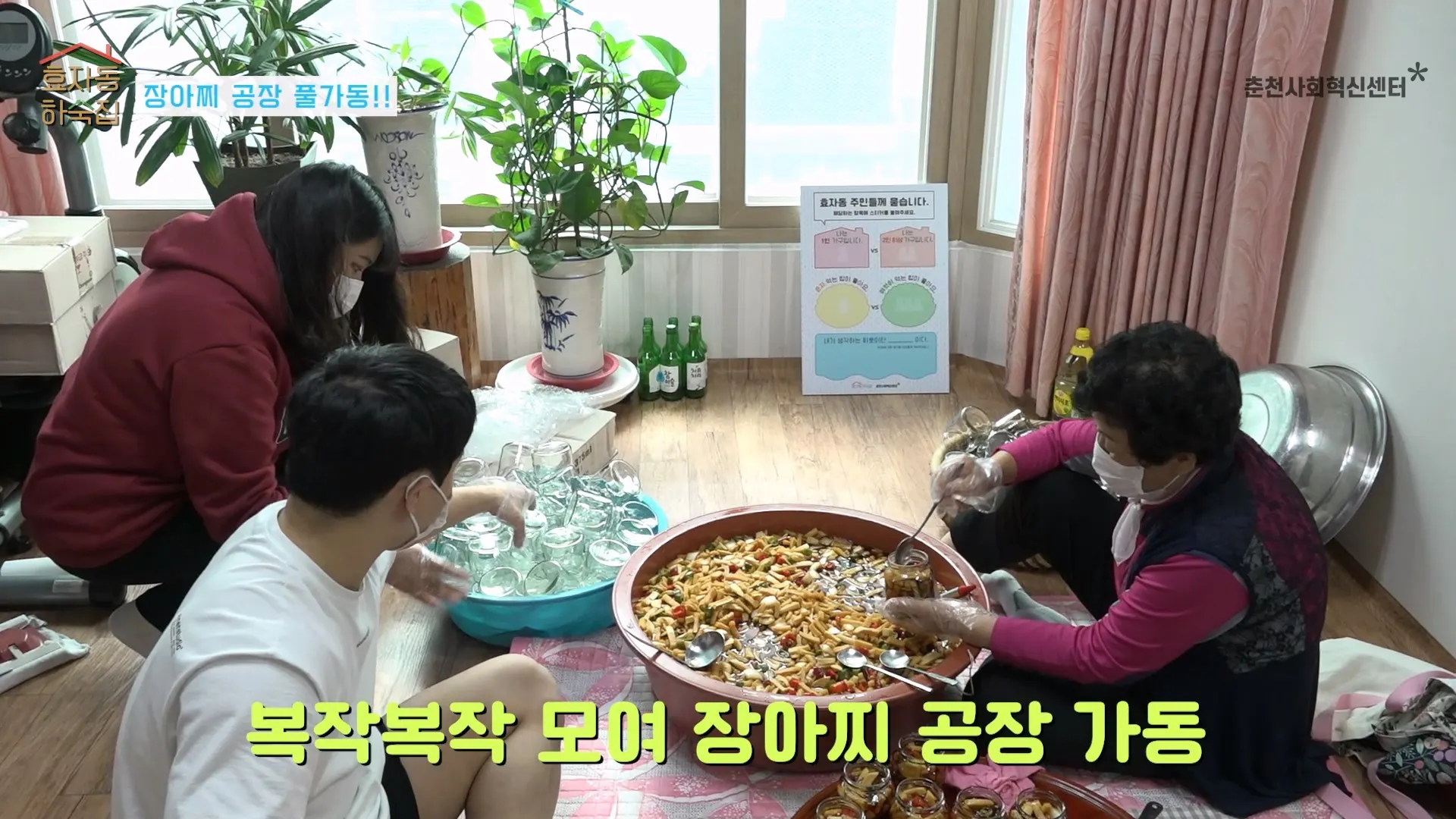 일명 ‘강원대 자대 쪽문’ 동네로 불리우는 효자2동은 1인 가구 밀집지역입니다. 학교 옆 동네답게 청년층이 대부분 살고 있으리라 짐작되지만, 그보다 노년층의 1인 가구가 조금 더 많다고 합니다. 1인 가구라는 공통점을 가졌지만 이 두 세대는 마주할 일이 없습니다. 사회 활동이 현저히 떨어지는 노년층과 식습관 개선이 필요한 청년층이 만난다면, 마을에 새로운 분위기를 만들 수 있지 않을까 상상했습니다. 어떻게 하면 할머니와 청년들을 만나게 할 수 있을지 고민했고 그 답은 동네의 역사, ‘하숙집 밀집지역’에서 찾을 수 있었습니다.